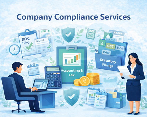 Company compliance services include mandatory filings, documentation, and statutory requirements that businesses must follow under Indian corporate, tax, and regulatory laws. Timely compliance protects your company from legal issues and financial penalties.